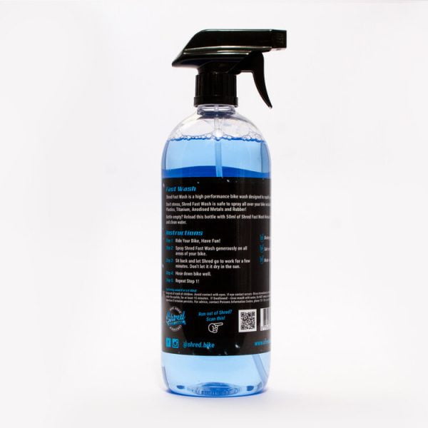 With just five easy steps, and no need to agitate, Shred Fast Wash is safe to use on all surfaces such as Carbon Fibre, Plastic, Alloy, Titanium and all paint finishes including anodised surfaces.