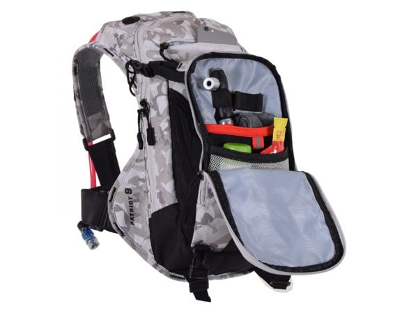 This award winning badboy is extremely well-balanced and perfect for freeriding, downhill and crossing rough trails. The PATRIOT 9 is super-slim for its 9L capacity and keeps you totally covered with helmet, tool, food and phone accommodations plus a premium Shape-Shift 2,5 liter hydration system that will keep you hydrated all the way to the finish line. The PATRIOT 9 with its 4-point suspension harness makes the gnarliest ride seem like a back rub. The suspension stretch function in the shoulder straps reduces the pressure on your shoulders and the elastic of the chest straps allows full body movement and breathing capacity. To boost comfort this pack is equipped with an anti-slip airflow backpanel Air-Meg with two foam stripes with anti-slip silicone strings keeping the pack in place on your back. The stripe shape is designed to give optimal fit and improve the circulation of air over the back. If you want to carry an extra helmet and protection gear, you will love the attachment system on the PATRIOT 9. Inside the pack youll find a specially designed compression-pocket for the hydration bladder, a water resistant smartphone pocket and an organizer compartment for carry tools, food, keys and a first-aid kit.