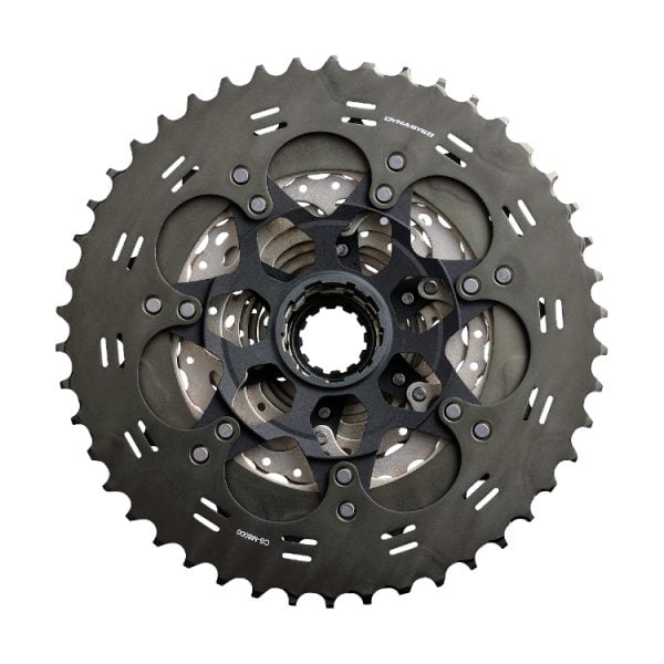 The SHIMANO DEORE XT cassette shaves weight while maintaining durability thanks to an alloy sprocket carrier. This DYNA-SYS11 cassette delivers precise shifting even in the most demanding mountain biking situations.